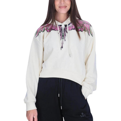 • MARCELO BURLON Felpa Cappuccio Crop Iconica panna